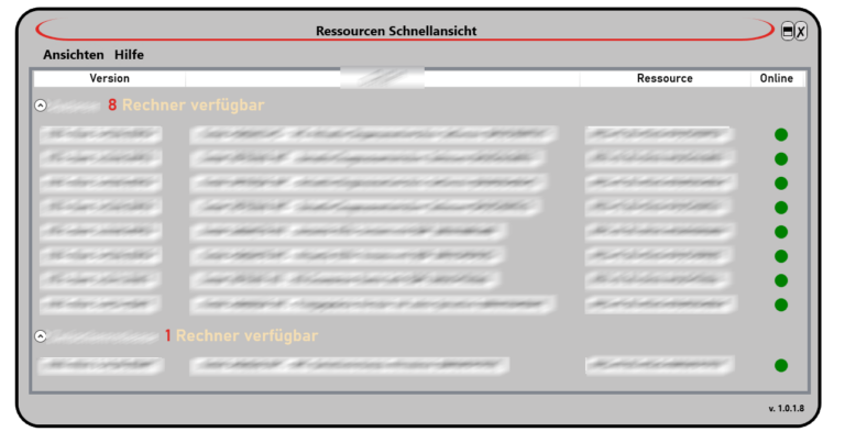 Hier ist die Standartansicht zu sehen, ein Funktion Aufruf sowie die erweiterte Ansicht, der grüne Punkt gibt Auskunft ob die Ressource im Netzwerk erreichbar ist.